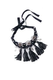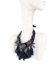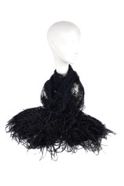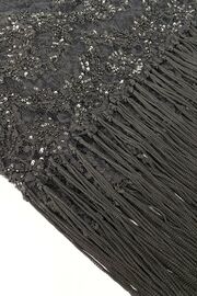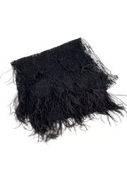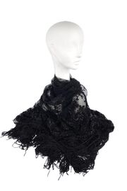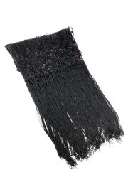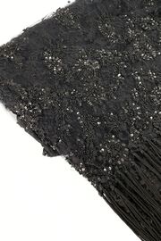 Шаль чёрного цвета из кружева с бахромой и вышивкой бисером