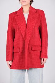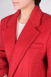 Пальто-жакет красного цвета с декором из камней