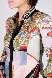 Шелковое платье-рубашка с ярким принтом