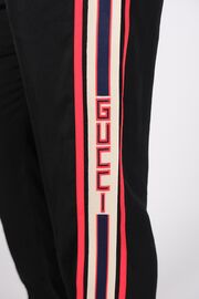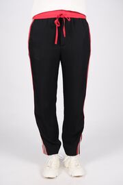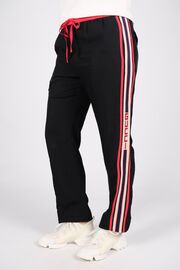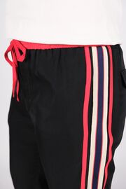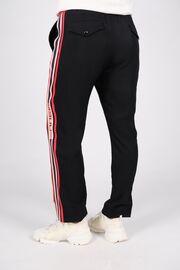 Брюки черного цвета с красной резинкой и лампасами