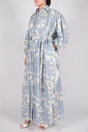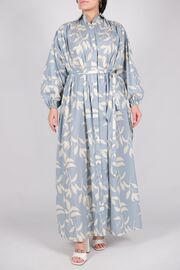 Платье свободного кроя голубого цвета с белым узором