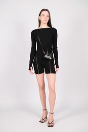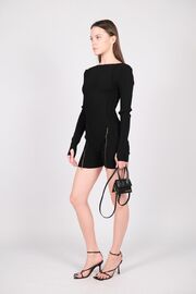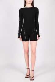 Комбинезон черного цвета в рубчик с вырезом на спине
