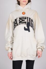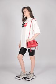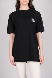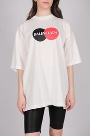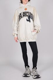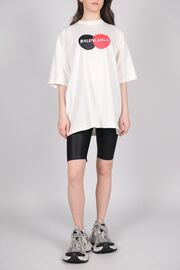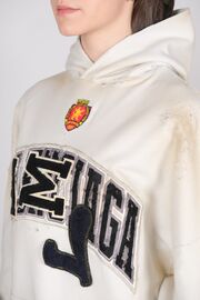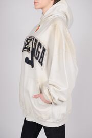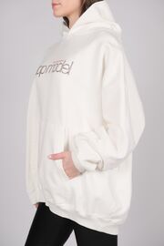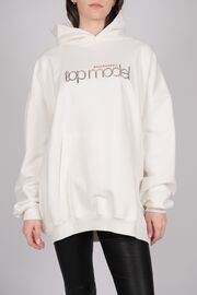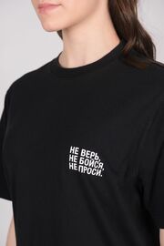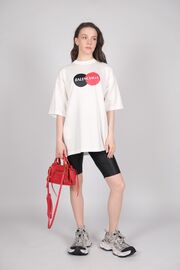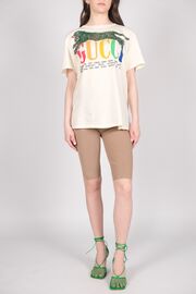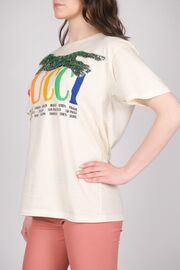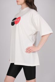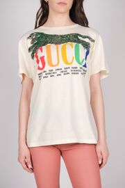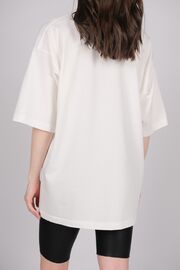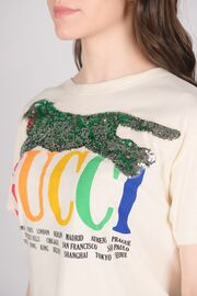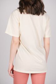 Футболка молочного цвета с принтом и аппликацией из пайеток на груди