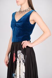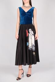 Платье черного цвета с бархатными вставками и открытыми плечами