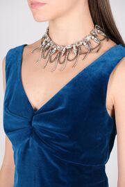 Шелковое платье изумрудного цвета с воротником-стойкой и вырезом