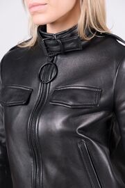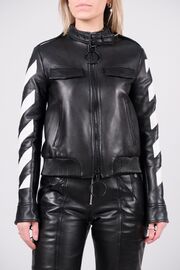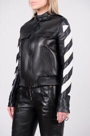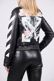Кожаная куртка черного цвета с принтом на спине и рукавах