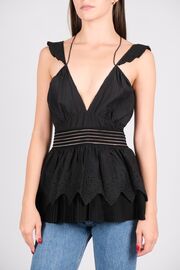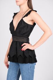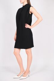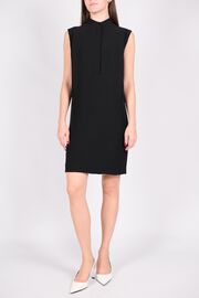 Шелковое платье черного цвета с воротником-стойкой на пуговицах