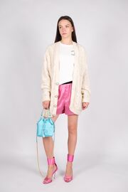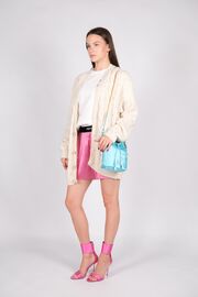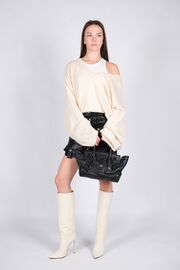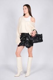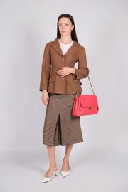 Комбинированное пальто с рукавом 3/4 и кожаными вставками