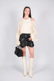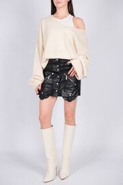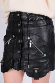 Кожаная юбка черного цвета на кнопках с накладными карманами