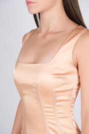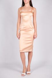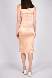 Шелковое платье бледно-розового цвета в коричневый горошек
