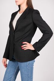 Жакет приталенный темно-серого цвета в тонкую полоску