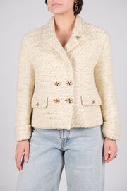 Жакет на молнии расшитый кожаными деталями золотого цвета
