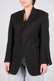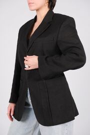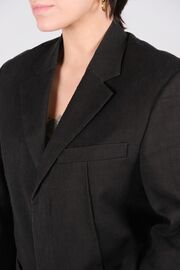 Жакет приталенный темно-серого цвета в тонкую полоску