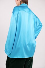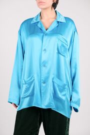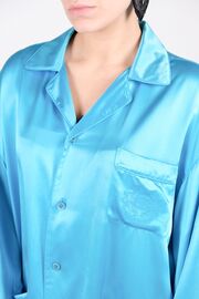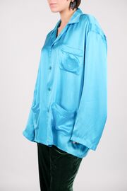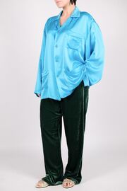 Блуза в пижамном стиле голубого цвета с зелеными листьями