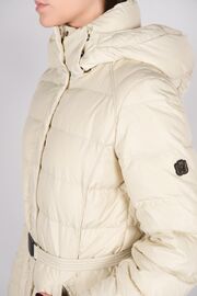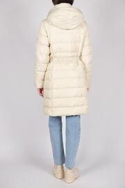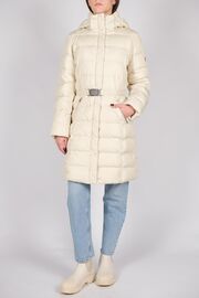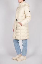 Удлиненный пуховик черного цвета со стеганным объемным шарфом