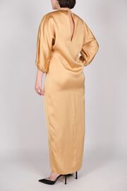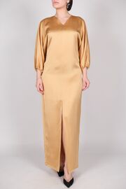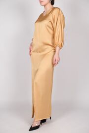 Платье в пол с разрезом спереди бежевого цвета