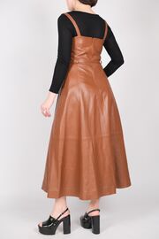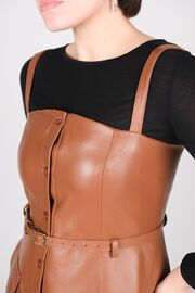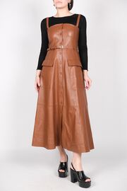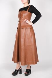Кожаное платье коричневого цвета с накладными карманами