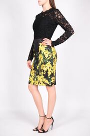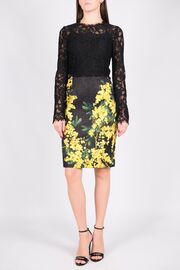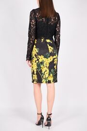 Платье из кружева черного цвета с мимозами на юбке
