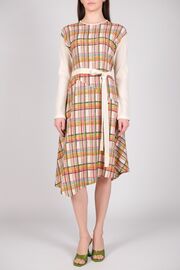 Платье комбинированное пудрового цвета без рукавов