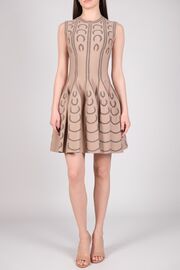 Платье бежевого цвета с черным орнаментом