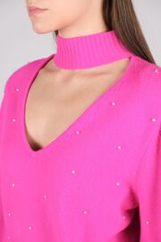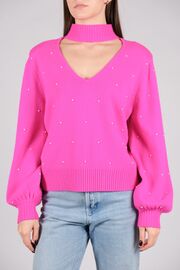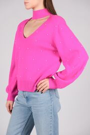 Удлиненный джемпер серого цвета с декором из цепочек на груди