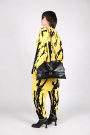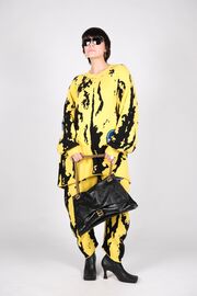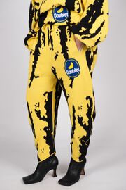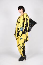 Костюм молочного цвета с набивным рисунком черно-белого цвета