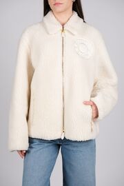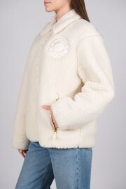 Меховая куртка молочного цвета с эмблемой