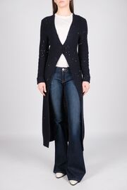 Удлиненный кардиган тёмно-синего цвета с пайетками