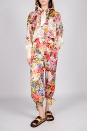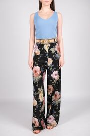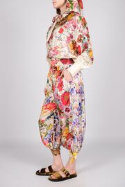 Шёлковый брючный костюм с цветочным принтом