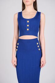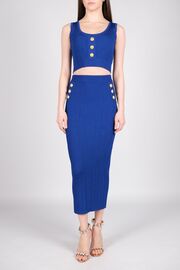 Костюм ярко-синего цвета с юбкой