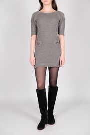 Платье из шерсти с металлической нитью с V-образным вырезом