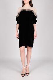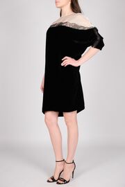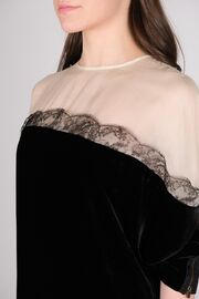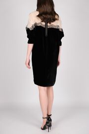 Платье бархатное черного цвета с белым верхом и кружевным декором