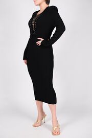 Пояс черного цвета с серебристой пряжкой и цепочкой