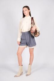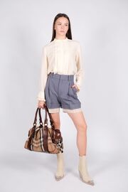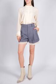 Шелковая блуза кремового цвета с рюшами на манжетах