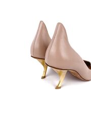 Лодочки бежевого цвета с золотым каблуком