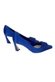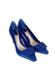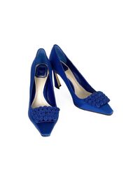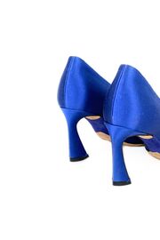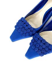 Сатиновые туфли синего цвета с розочками