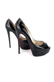 Туфли лакированные черного цвета с открытым носиком и на подносочной платформе