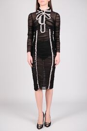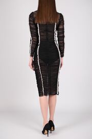 Платье черного цвета из сетки с драпировкой и кружевным кантом