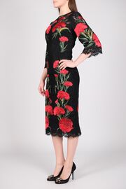 Кружевное платье черного цвета с вышивкой Маки
