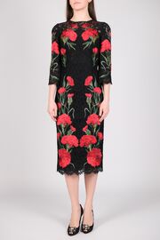 Платье черного цвета в крупные красные гвоздики