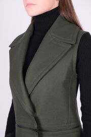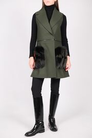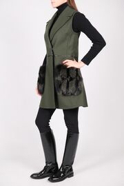 Жилет темно-зеленого цвета с карманами из меха лисы