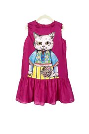 Детское шелковое платье цвета фуксии с кошечкой