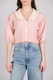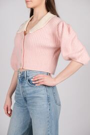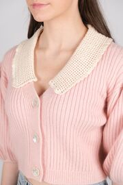 Кардиган розового цвета с белым воротничком