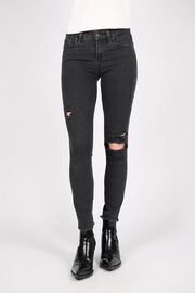 Джинсы-скинни темно-серого цвета с разрывом на колене