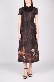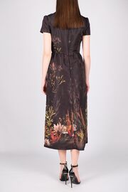 Хлопковое платье бежевого цвета с розовым орнаментом