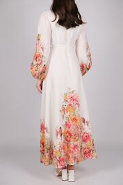 Льняное платье молочного цвета с цветочным орнаментом
