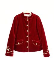 Детский велюровый жакет красного цвета с золотистой окантовкой