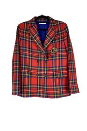 Детский пиджак-пальто комбинированный в клеточку красного цвета