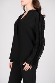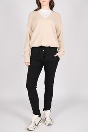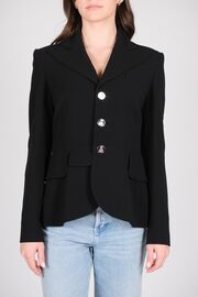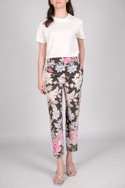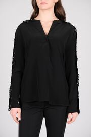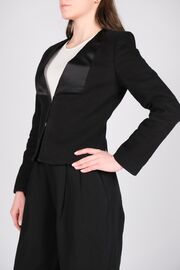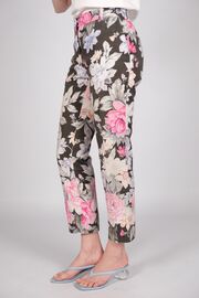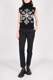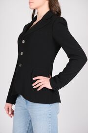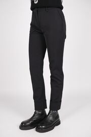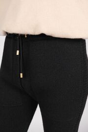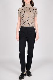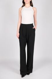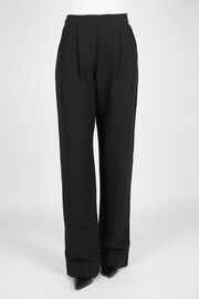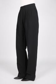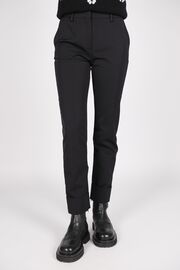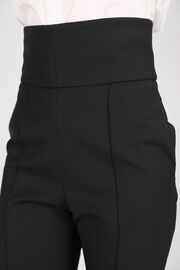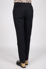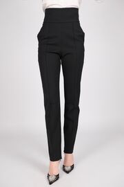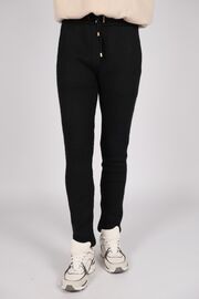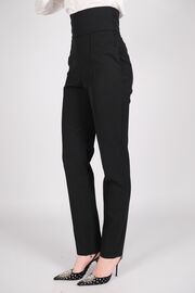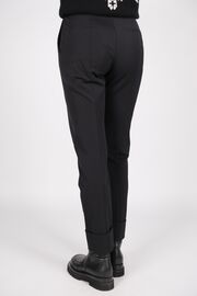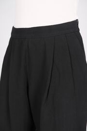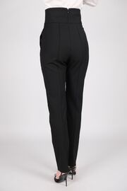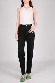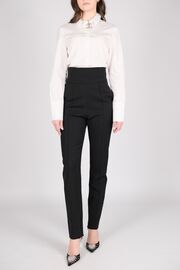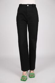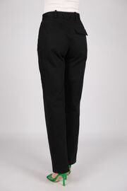 Хлопковые брюки черного цвета со стрелками и зеленой пуговицей