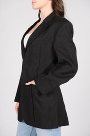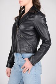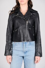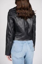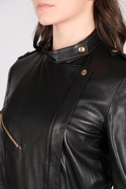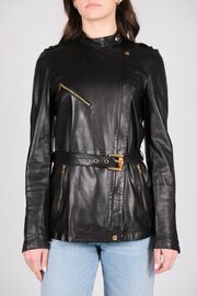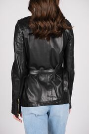 Удлиненная кожаная куртка чёрного цвета с поясом